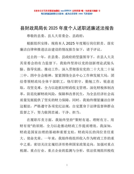 / 县财政局局长2025年度个人述职述廉述法报告