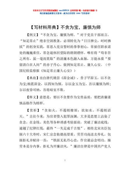 / 【写材料用典】不贪为宝,廉慎为师