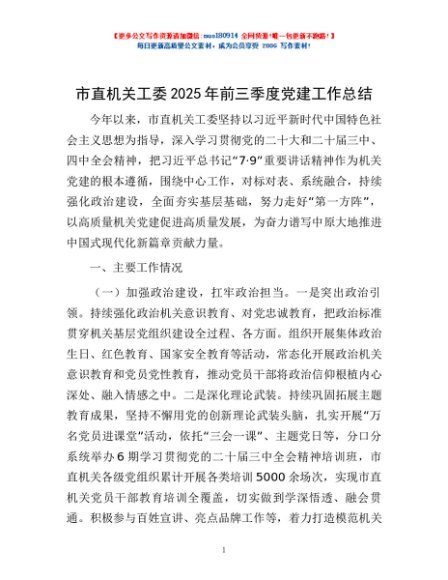 / 市直机关工委2025年前三季度党建工作总结