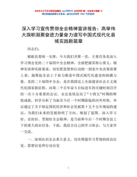 深入学习宣传贯彻全会精神宣讲报告:高举伟大旗帜凝聚奋进力量 奋力谱写中国式现代化县域实践新篇章