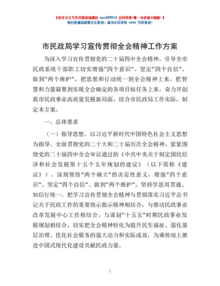 / 市民政局学习宣传贯彻全会精神工作方案
