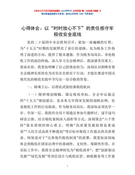 / 心得体会:以“时时放心不下”的责任感守牢税收安全底线