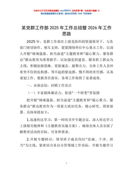 / 某党群工作部2025年工作总结暨2026年工作思路
