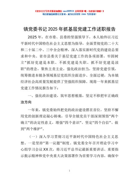 / 镇党委书记2025年抓基层党建工作述职报告