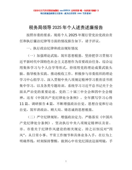 / 税务局领导2025年个人述责述廉报告