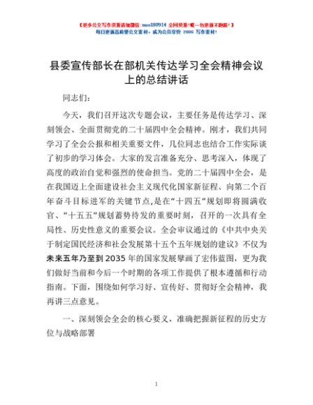 / 县委宣传部长在部机关传达学习全会精神会议上的总结讲话