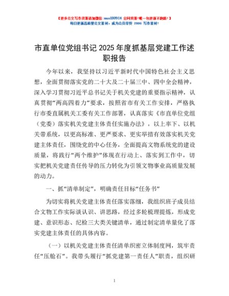 / 市直单位党组书记2025年度抓基层党建工作述职报告