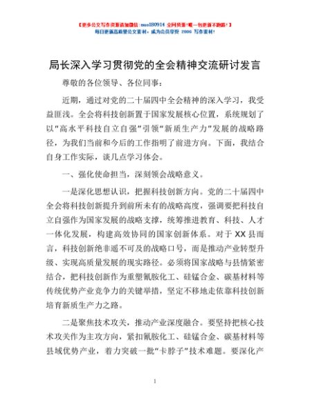 / 局长深入学习贯彻党的全会精神交流研讨发言