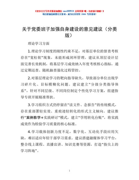 / 关于党委班子加强自身建设的意见建议(分类版)