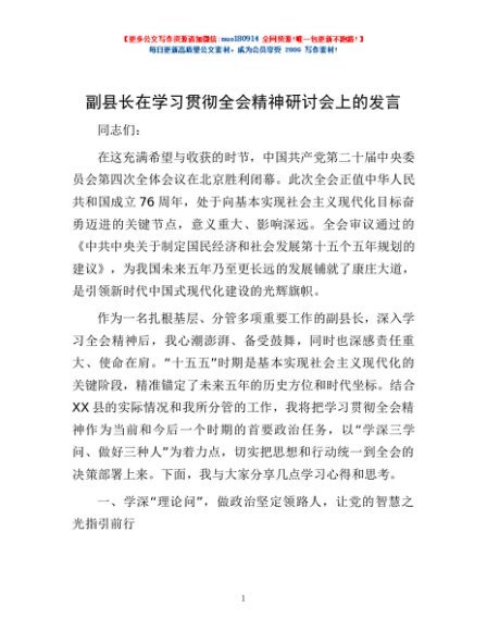 / 副县长在学习贯彻全会精神研讨会上的发言