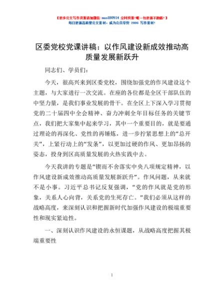 / 区委党校党课讲稿:以作风建设新成效推动高质量发展新跃升