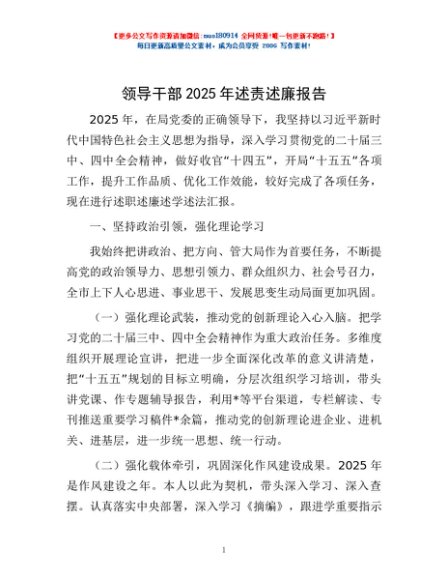 / 领导干部2025年述责述廉报告