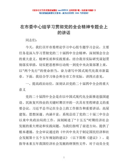 / 在市委中心组学习贯彻党的全会精神专题会上的讲话