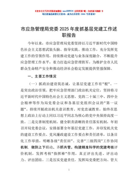 / 市应急管理局党委2025年度抓基层党建工作述职报告