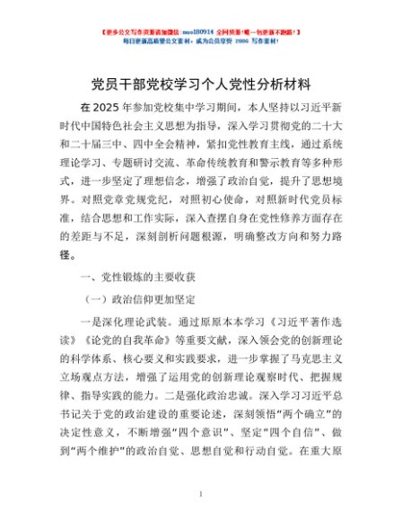 / 党员干部党校学习个人党性分析材料