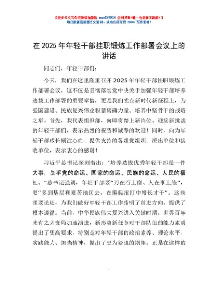 / 在2025年年轻干部挂职锻炼工作部署会议上的讲话