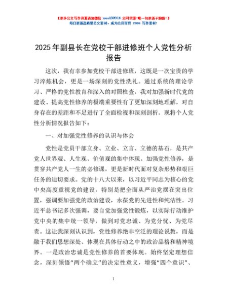 / 2025年副县长在党校干部进修班个人党性分析报告