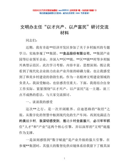 / 文明办主任“以才兴产、以产富民”研讨交流材料