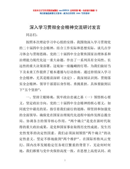 / 深入学习贯彻全会精神交流研讨发言