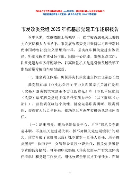 / 市发改委党组2025年抓基层党建工作述职报告