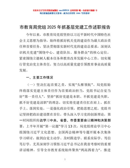 / 市教育局党组2025年抓基层党建工作述职报告