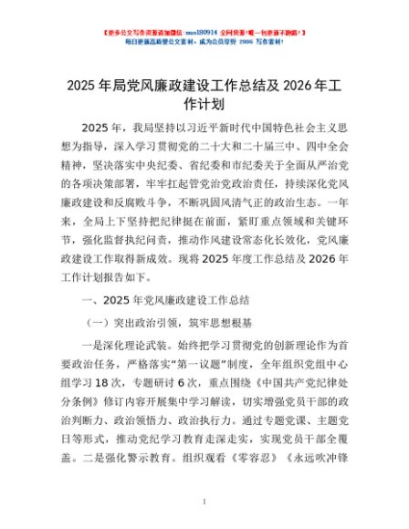 / 2025年局党风廉政建设工作总结及2026年工作计划