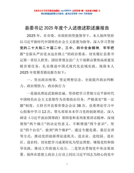 2025年度党员干部履行全面从严治党“一岗双责”情况报告