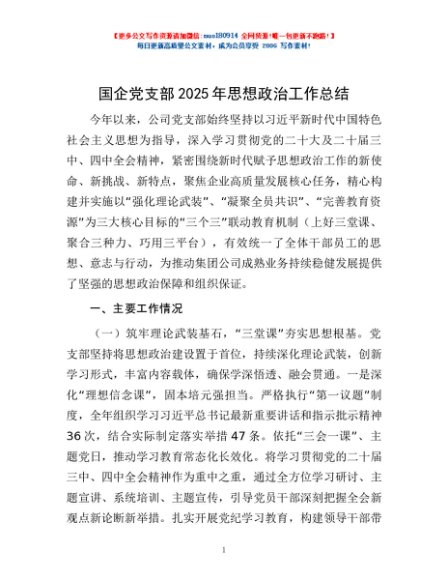 / 国企党支部2025年思想政治工作总结