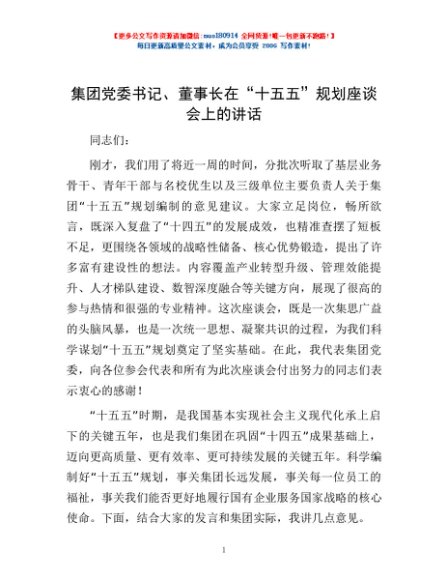 / 集团党委书记、董事长在“十五五”规划座谈会上的讲话