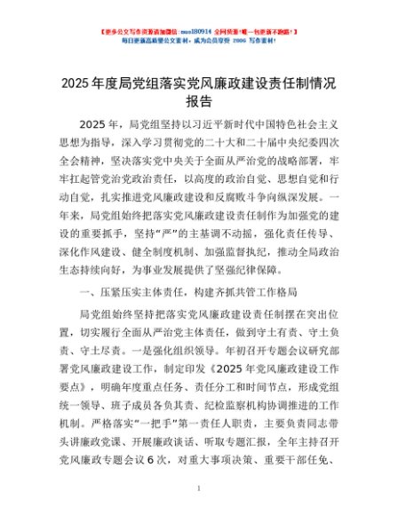 / 2025年度局党组落实党风廉政建设责任制情况报告