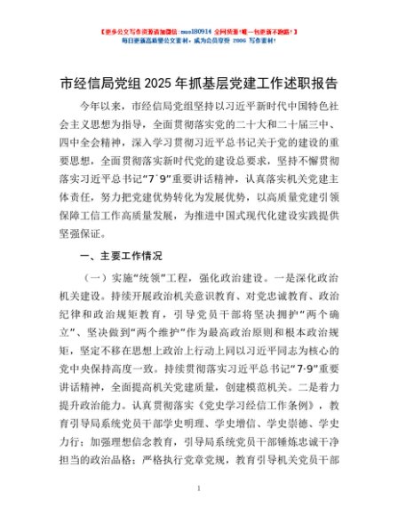 / 市经信局党组2025年抓基层党建工作述职报告
