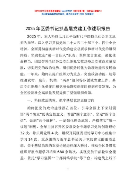 纪委监委机关党委书记2025年抓基层党建工作述职报告