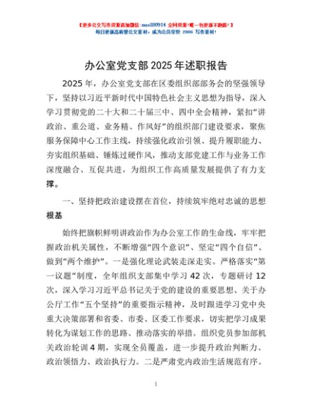 / 办公室党支部2025年述职报告