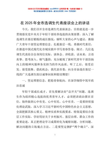 / 在2025年全市选调生代表座谈会上的讲话