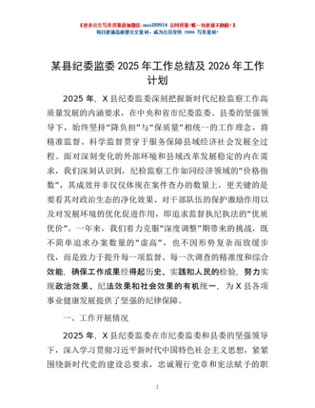 / 某县纪委监委2025年工作总结及2026年工作计划