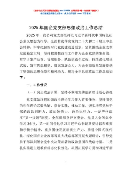 / 2025年国企党支部思想政治工作总结