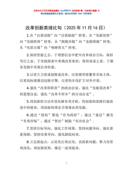 / 改革创新类排比句(2025年11月16日)