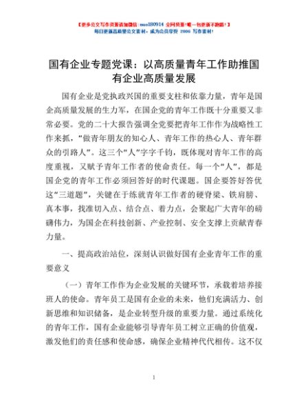 / 国有企业专题党课:以高质量青年工作助推国有企业高质量发展