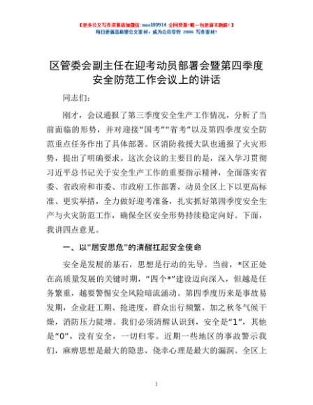 / 区管委会副主任在迎考动员部署会暨第四季度安全防范工作会议上的讲话