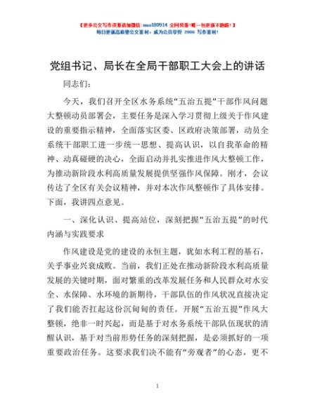 / 党组书记、局长在全局干部职工大会上的讲话