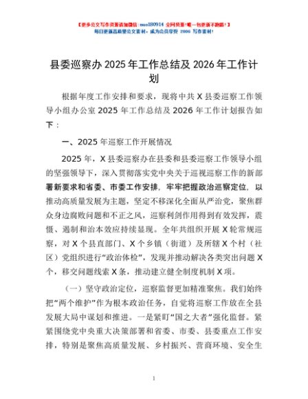 / 县委巡察办2025年工作总结及2026年工作计划