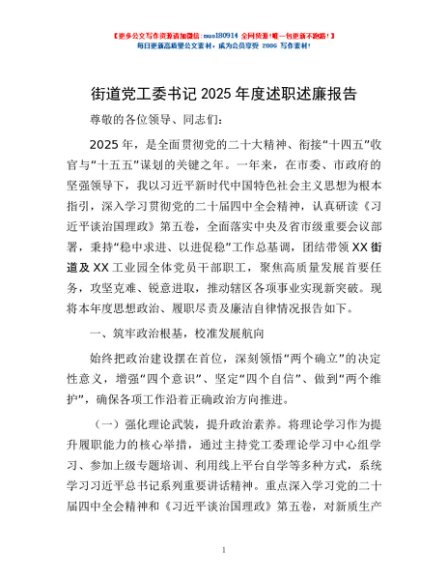 / 街道党工委书记2025年度述职述廉报告