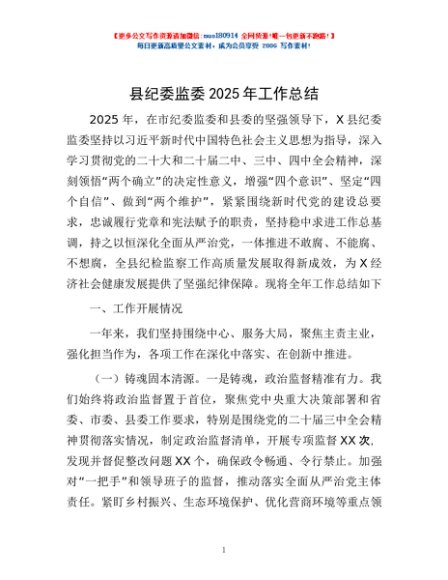/ 县纪委监委2025年工作总结
