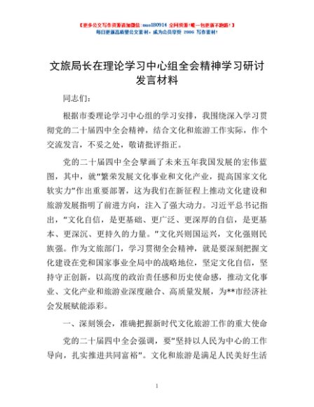 / 文旅局长在理论学习中心组全会精神学习研讨发言材料