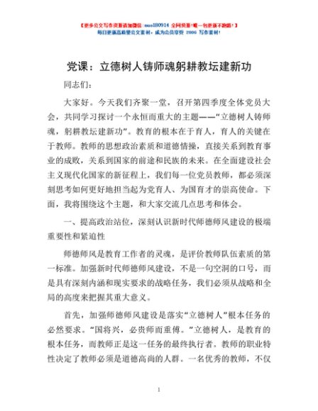 / 党课:立德树人铸师魂 躬耕教坛建新功