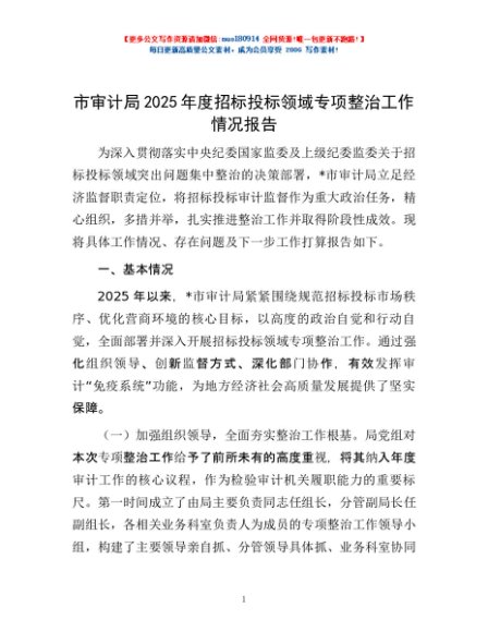 / 市审计局2025年度招标投标领域专项整治工作情况报告