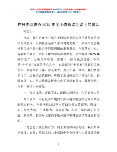 / 在县委网信办2025年度工作总结会议上的讲话