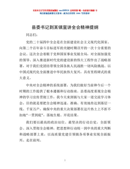 / 县委书记到某镇宣讲全会精神提纲