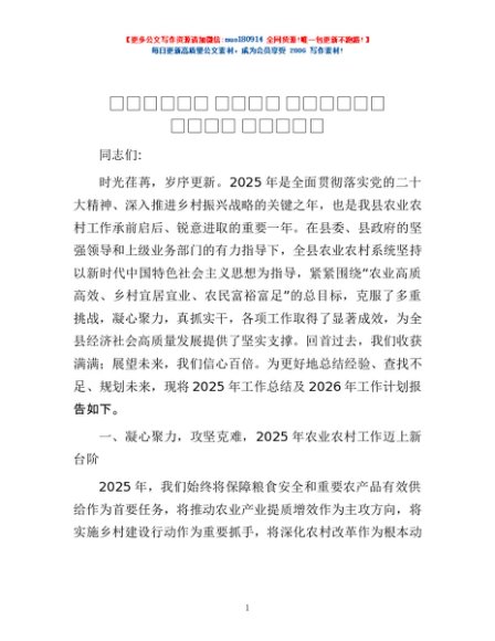 / 县农业农村局2025年工作总结及2026年工作计划