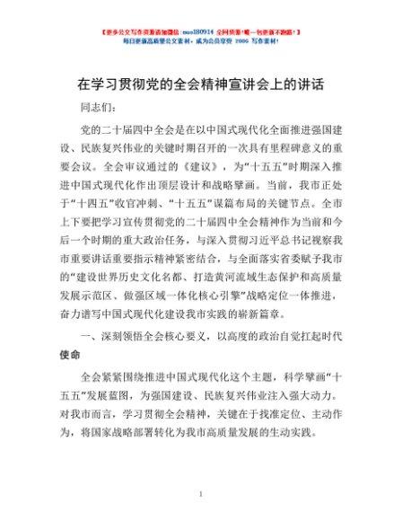 / 在学习贯彻党的全会精神宣讲会上的讲话